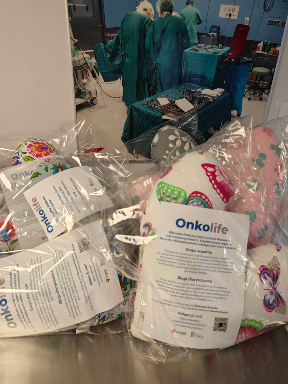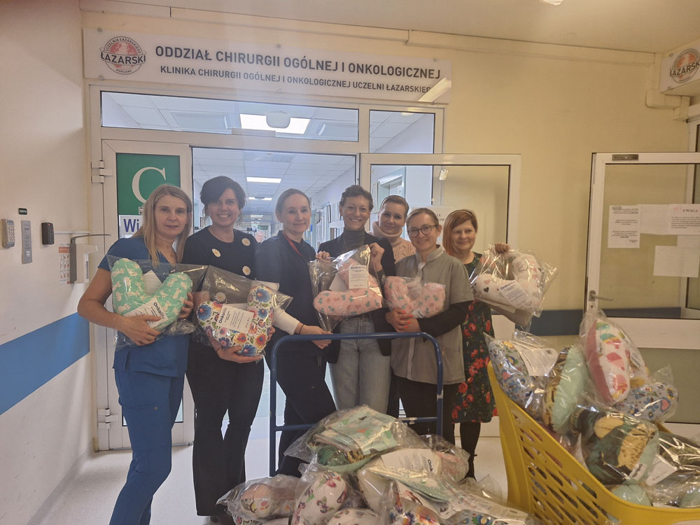 Dziś pacjenci onkologiczni Szpitala Zachodniego otrzymali poduszki i woreczki na leki wykonane przez grupę Onkolife oraz Koło Gospodyń Wiejskich.